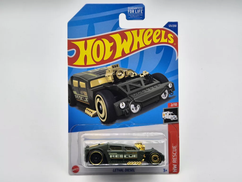 Hot Wheels Lethal Diesel - HW Rescue 2/10 - 121/250 - long card - 1:64 1/64 toy car (m01659) product code: m01659 brand: Hot Wheels scale: 1:64 (matchbox size) Toy car, not openable New product!