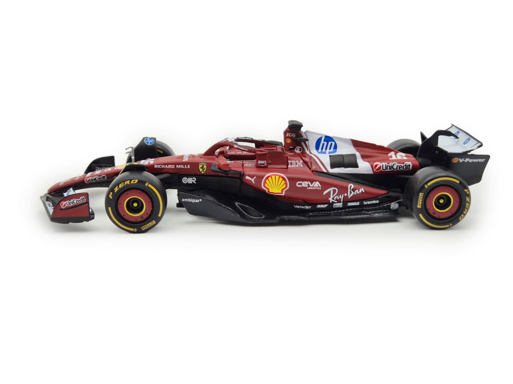 The Bburago 1:43 scale model accurately captures the proportions and presence of the real Formula 1 car. Detailed bodywork, authentic Ferrari livery and quality finishes make it an excellent display piece. A perfect collectible for Formula 1 fans, Ferrari enthusiasts and supporters of Charles Leclerc.