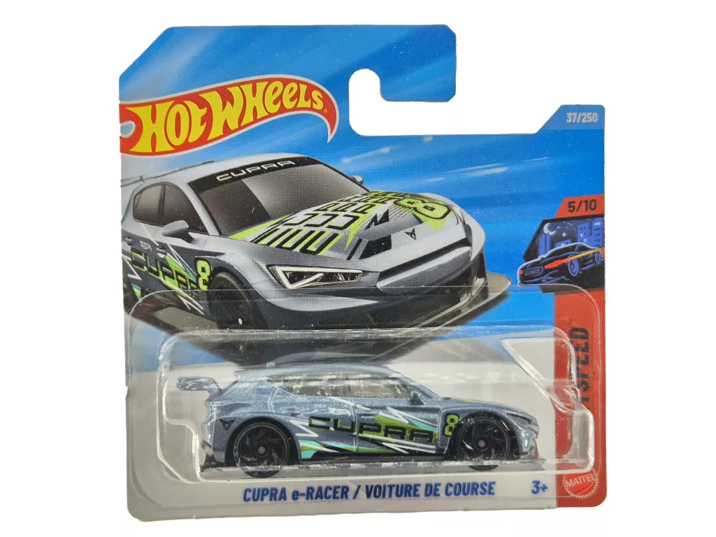 The Hot Wheels Cupra e-Racer – Night Speed 5/10 (37/250) brings the world of modern electric race cars to 1:64 scale. Its futuristic shape, wide stance, and striking details make it instantly recognizable. The Night Speed series highlights a dark, street and race-inspired style, making it popular among collectors. Supplied in blister packaging, it is an ideal choice for Hot Wheels and Cupra enthusiasts.
