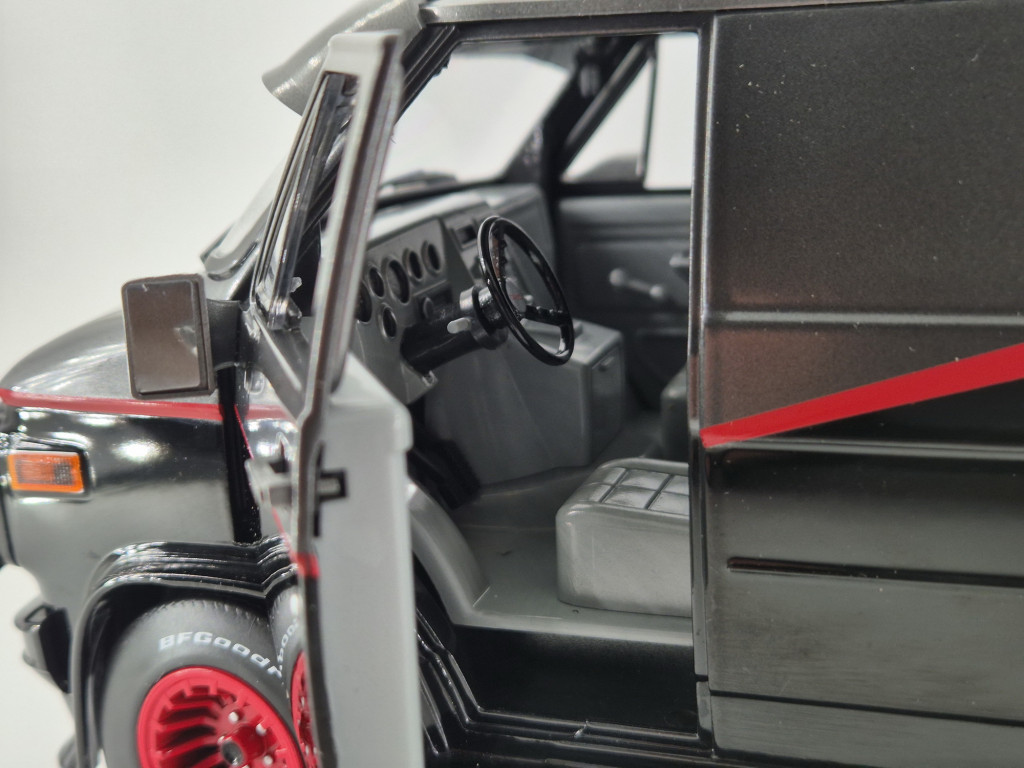 The Greenlight 1:18 scale model faithfully recreates the Vandura’s distinctive look. Accurate proportions, authentic graphics and detailed finishing give the miniature a strong display presence. The larger scale allows collectors to fully appreciate the unique styling and character of the van.