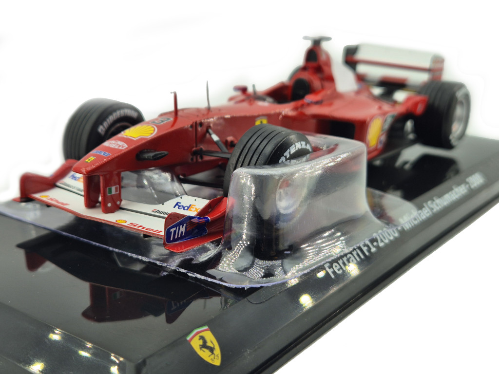 Visually, the F2000 captures the essence of the classic Ferrari F1 era: deep red bodywork, period sponsor decals, narrow nose design and aggressive aero elements. For many fans, this shape defines the Schumacher Ferrari years.